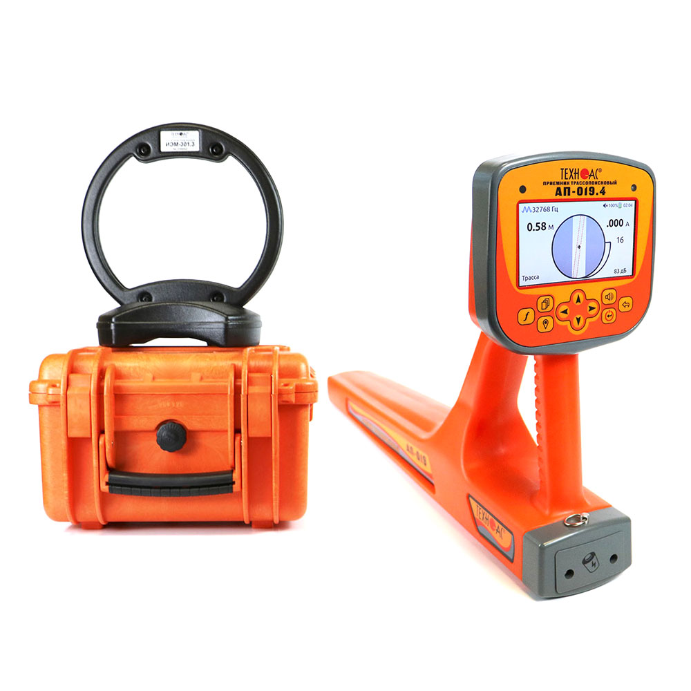 В составе комплекта приемник в виде моноблока с цветным ЖК дисплеем, на который выводится изображение трассы и в автоматическом режиме происходит расчет глубины залегания коммуникации до 30 м, а также величины тока в линии и самый мощный мультичастотный генератор в линейке ТЕХНО-АС, с дальностью работы до 10 км.