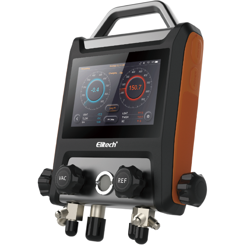 Серия MS манометрических коллекторов Elitech, имеет смарт-интеграцию таких функций, как измерение давления и температуры, измерения, удержание давления, измерение вакуума, измерение веса хладагента и записи данных, что в полной мере перекрывает все возможные потребности для ежедневного осмотра и технического обслуживания холодильных систем HVAC / R.